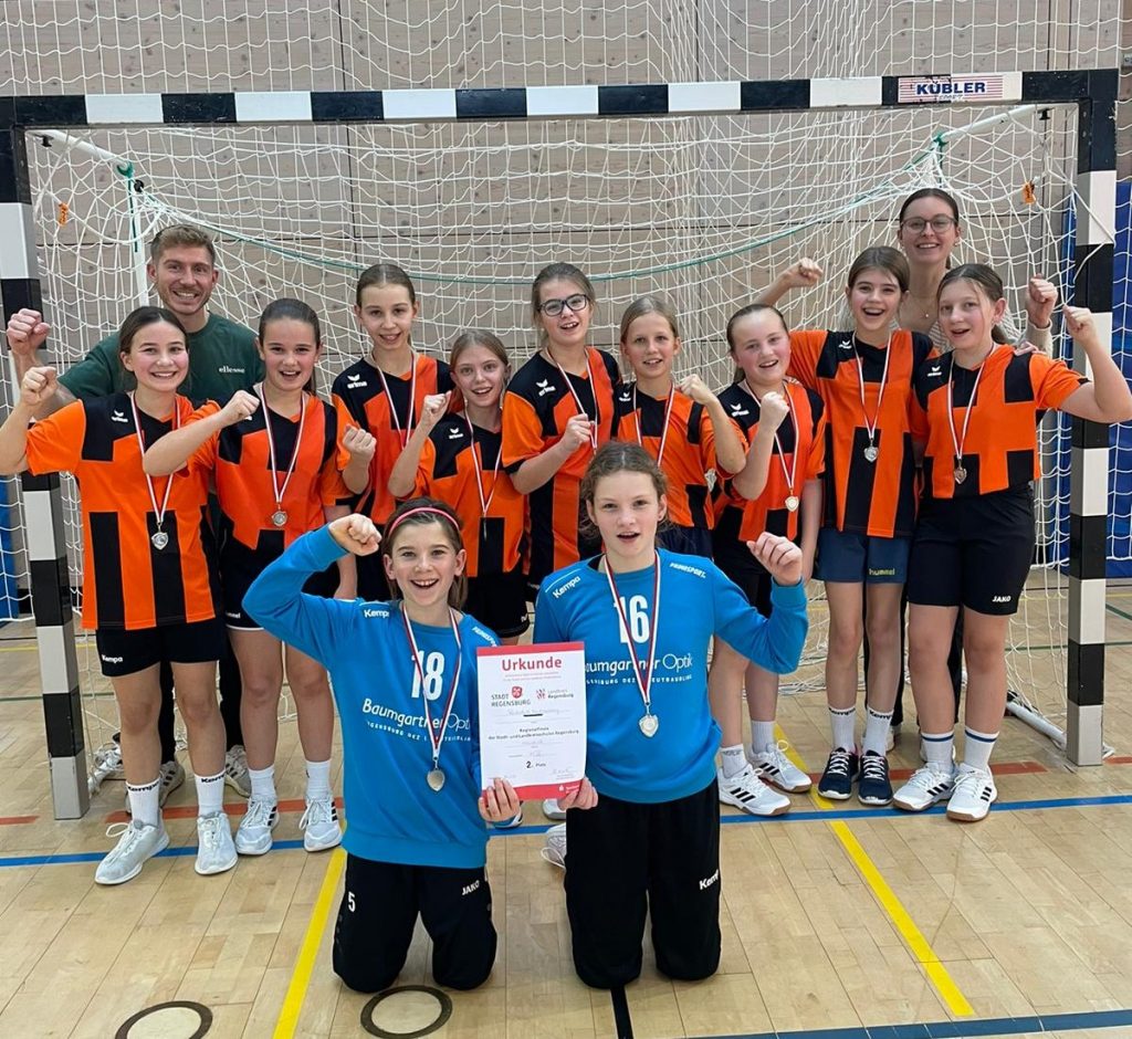 Die Realschule nahm auch mit einer Mädchenmannschaft der Jahrgänge 2013, 2014 und 2015 am Regionalfinale der Stadt- und Landkreisschulen Regensburg im Handball teil. Im ersten Spiel traf das von Sportlehrer Alexander Winberger betreute Team auf das Gymnasium Neutraubling und unterlag nach einer spannenden Partie knapp mit 8:11. Die Spielerinnen zeigten dabei eine starke Leistung, hielten gut dagegen und gestalteten das Spiel lange offen. Im zweiten Spiel überzeugte die Mannschaft mit einer sehr souveränen Vorstellung und gewann verdient mit 19:2. Alle Spielerinnen hatten großen Spaß an dem sportlichen Nachmittag und freuten sich am Ende über einen erfolgreichen zweiten Platz.